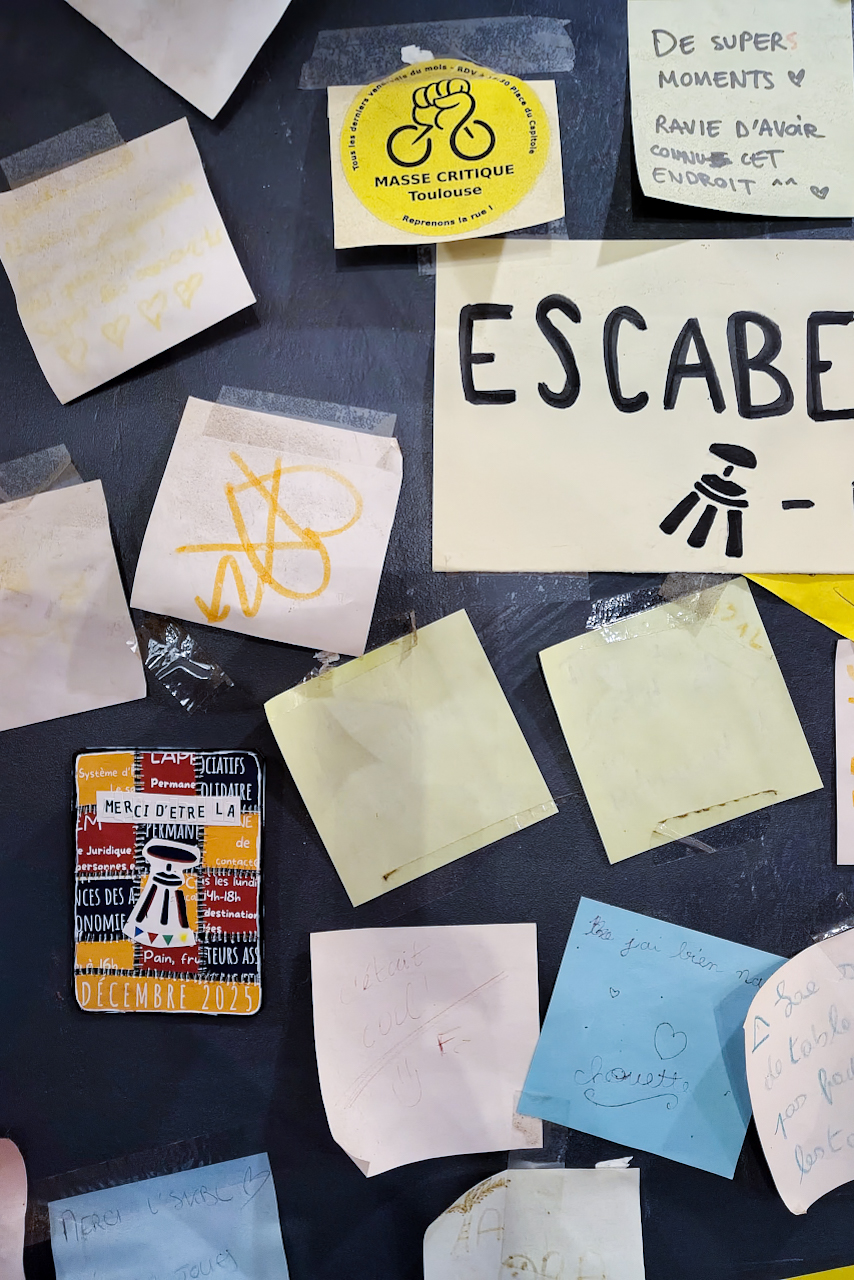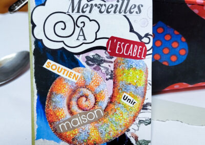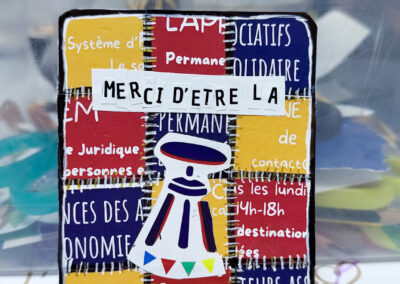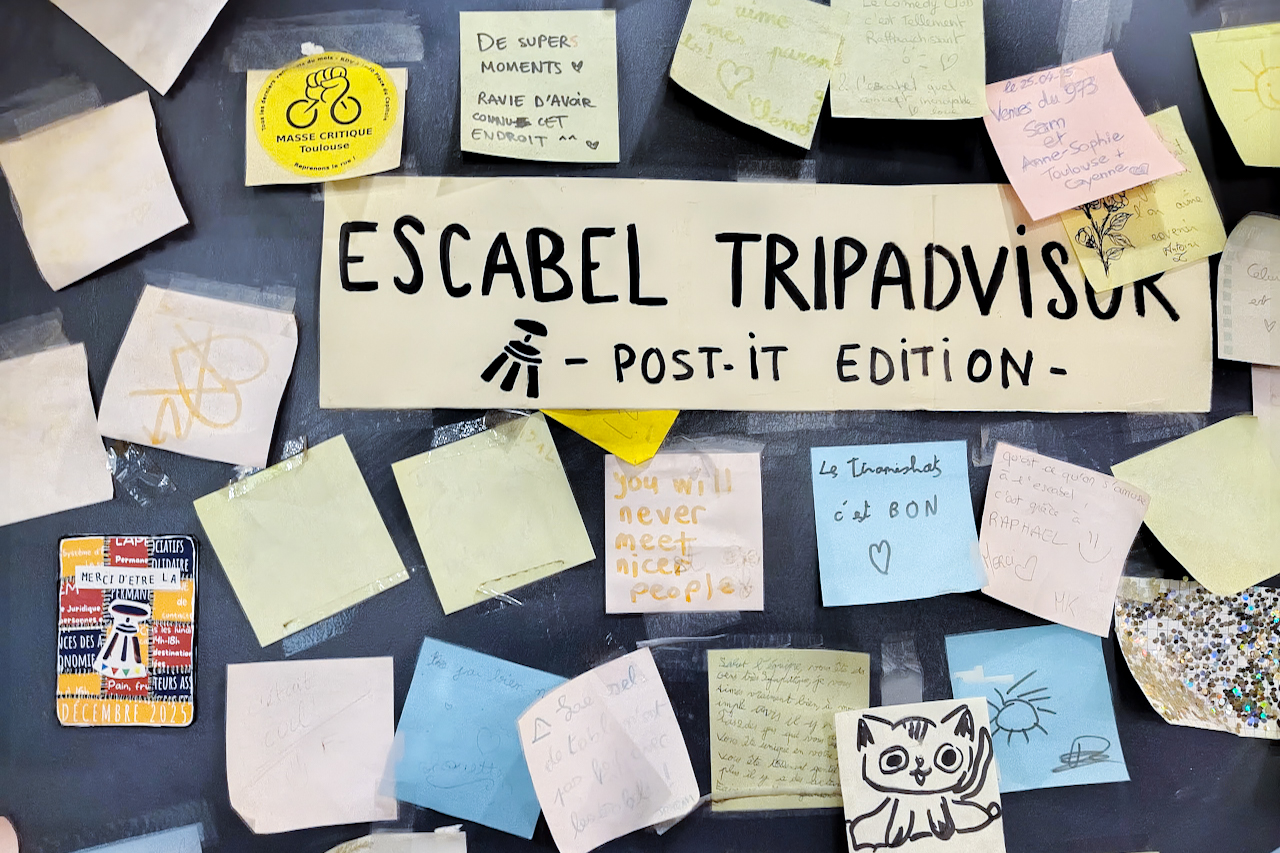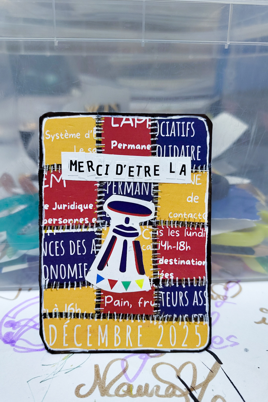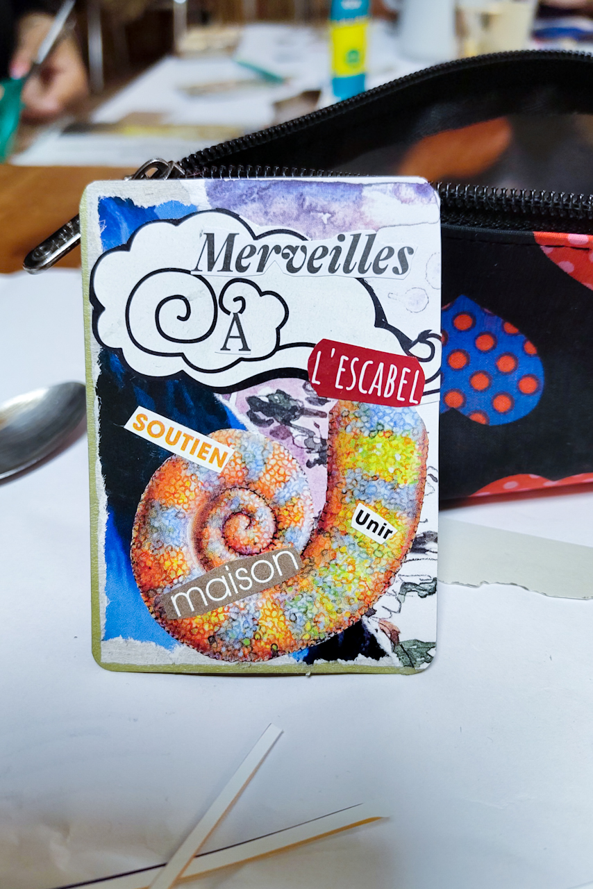 J’ai créé une carte d’artiste spécialement pour l’Escabel, à partir d’un programme de décembre et je l’ai affichée sur le panneau d’expression libre « l’Escabel TripAdvisor ».