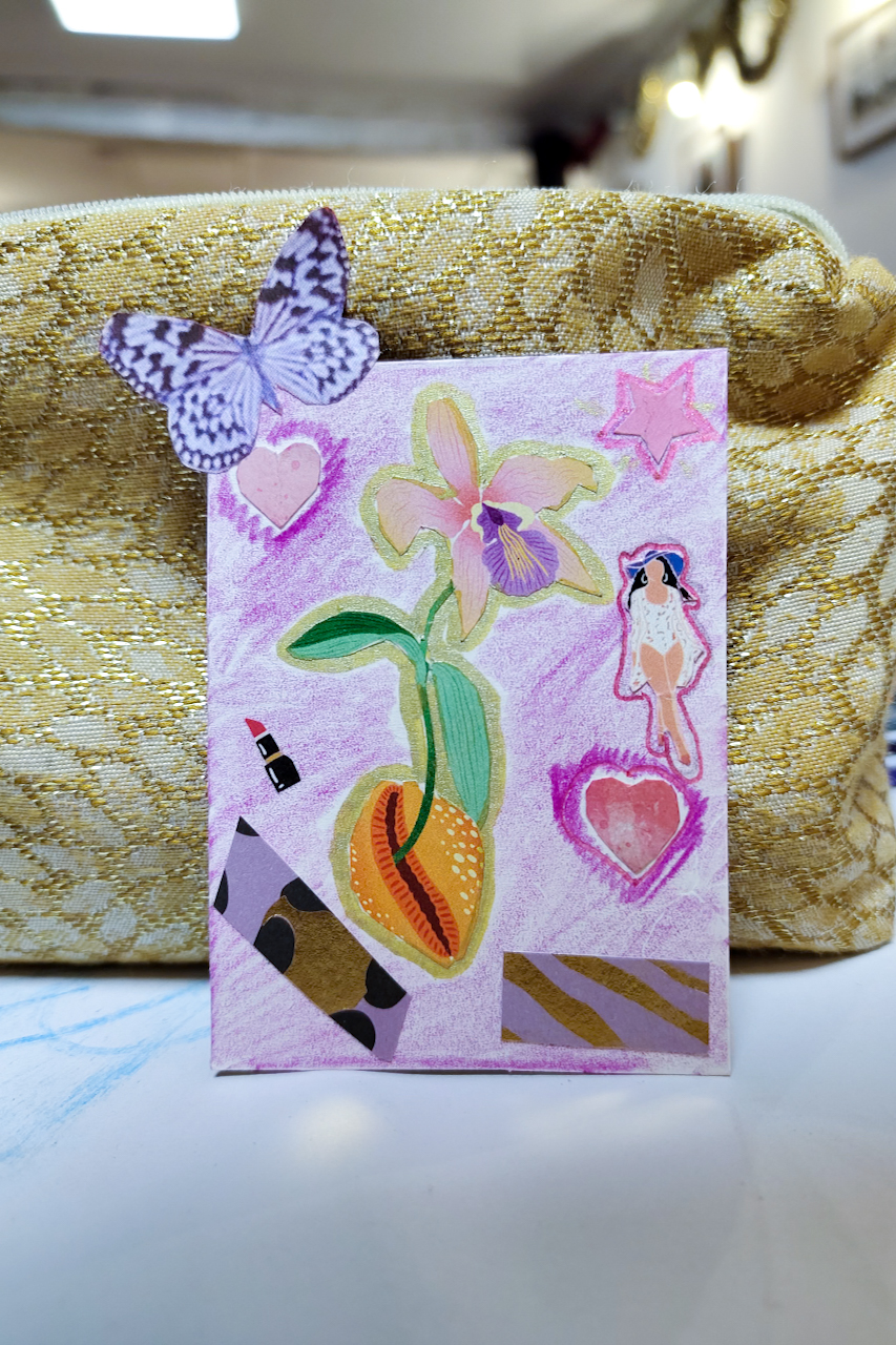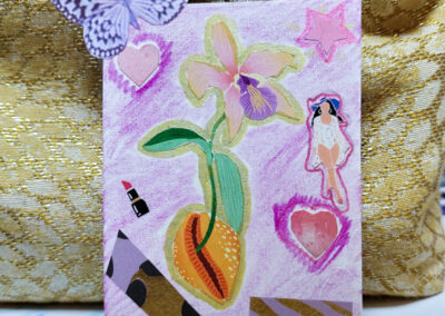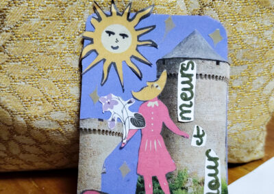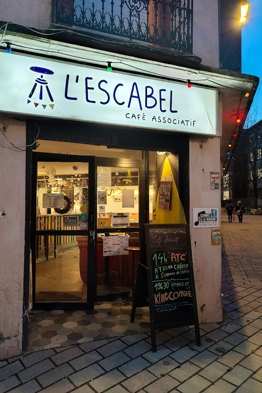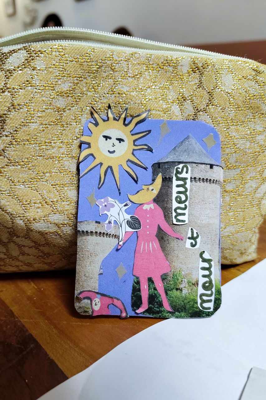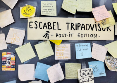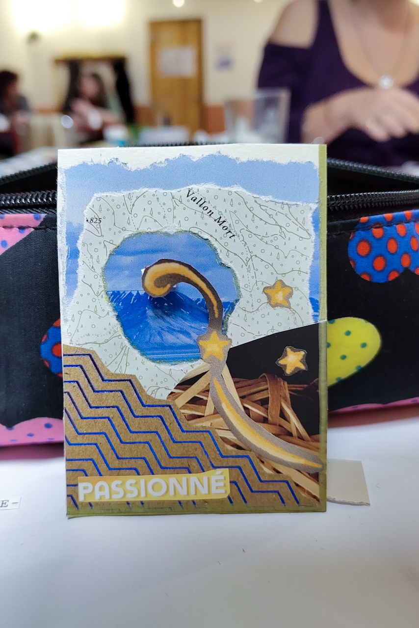 J’ai créé une carte d’artiste spécialement pour l’Escabel, à partir d’un programme de décembre et je l’ai affichée sur le panneau d’expression libre « l’Escabel TripAdvisor ».