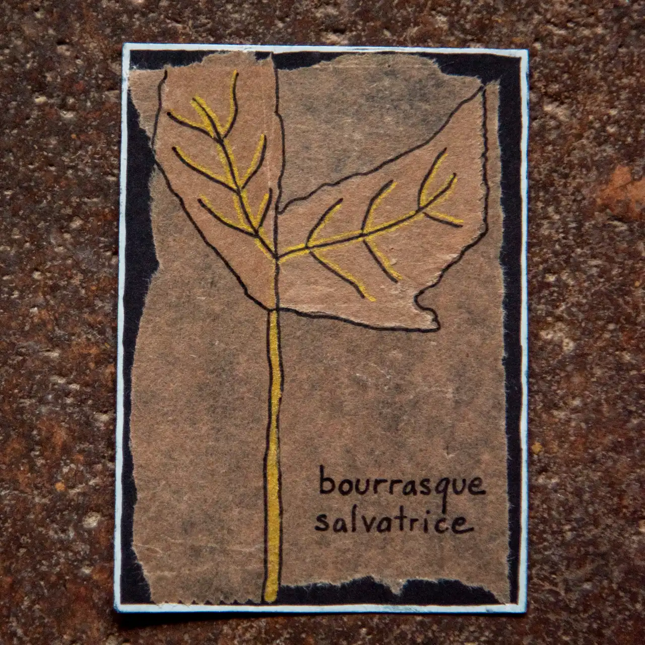 Chacun·e découpe ses cartes dans le papier qu’il veut (qui se tient un peu, comme une carte de visite) et crée au recto avec les médiums/techniques à plat (ou à peu près à plat) qu’il veut. Et au verso on écrit au minimum notre nom et l’année, et si on veut, on ajoute le nom de l’œuvre ou la série et notre contact. Ce sont des œuvres originales, au sens de uniques, pas des reproductions.